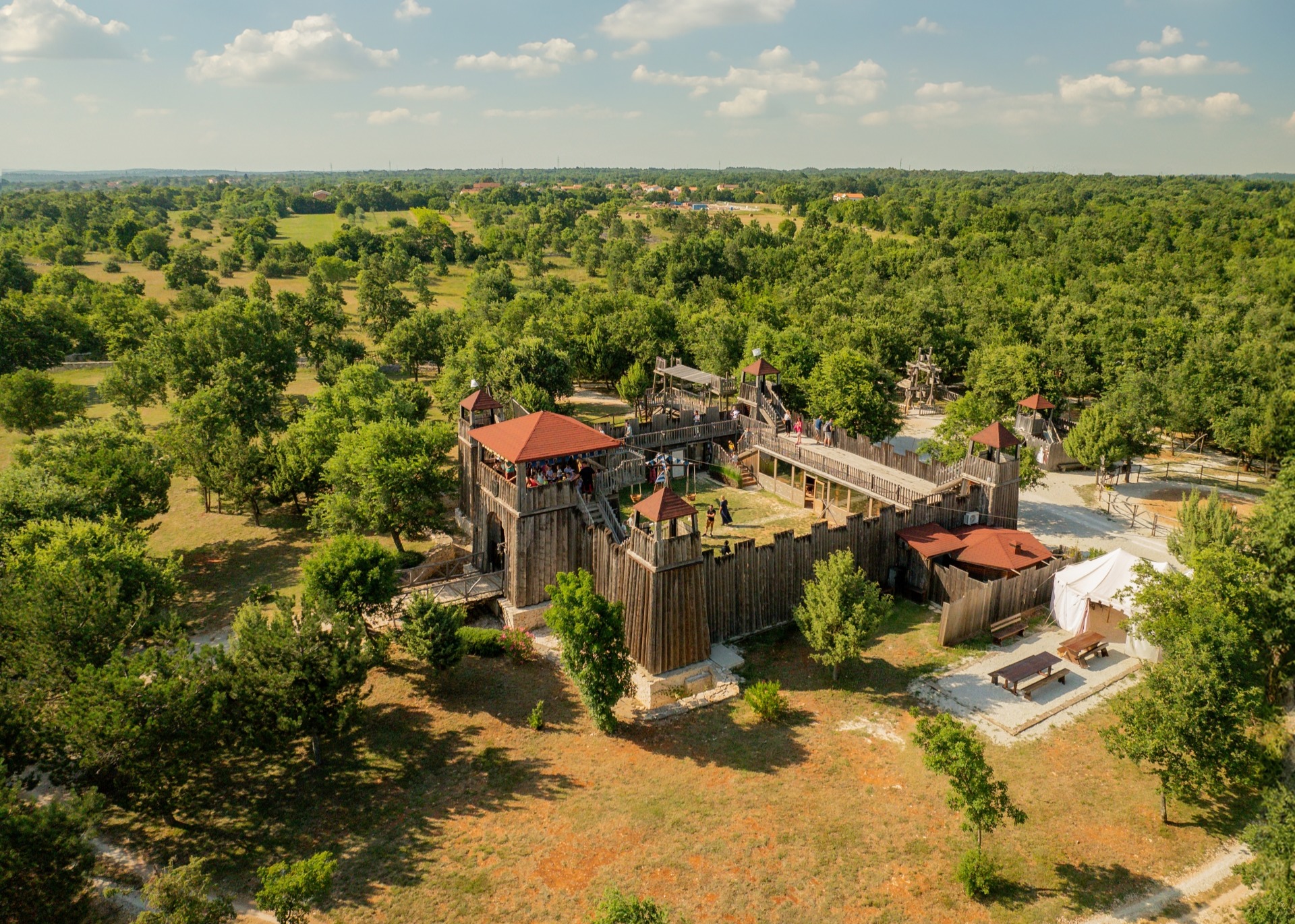 Welcome to Sanc. Michael, a unique theme park nestled in the picturesque Istrian village of Rapanji, near Svetvinčenat. Spread across more than 26,000 m² of unspoiled nature, the park features a large wooden medieval castle surrounded by numerous attractions that delight both children and adults alike.